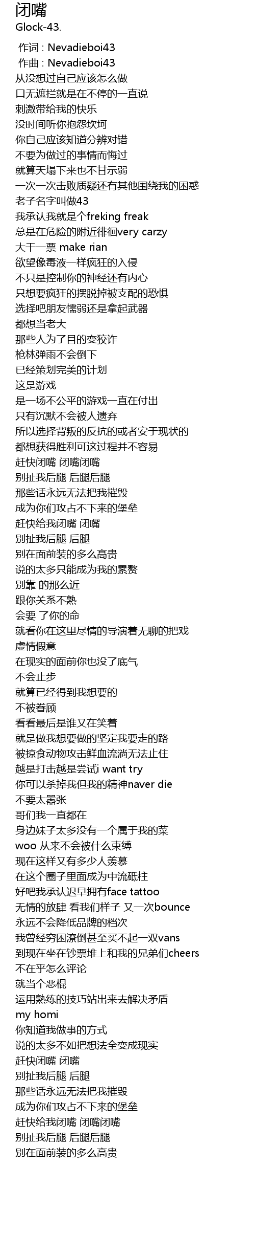 | [02:27.594] | 赶快闭嘴 闭嘴 |