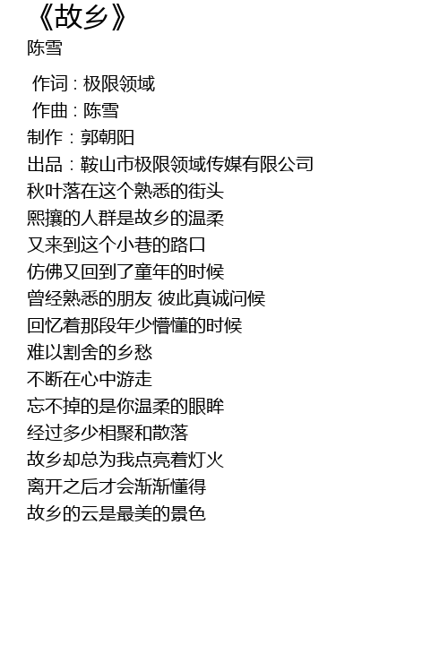 | [01:34.202] | gù xiāng de yún shì zuì měi dí jǐng sè |