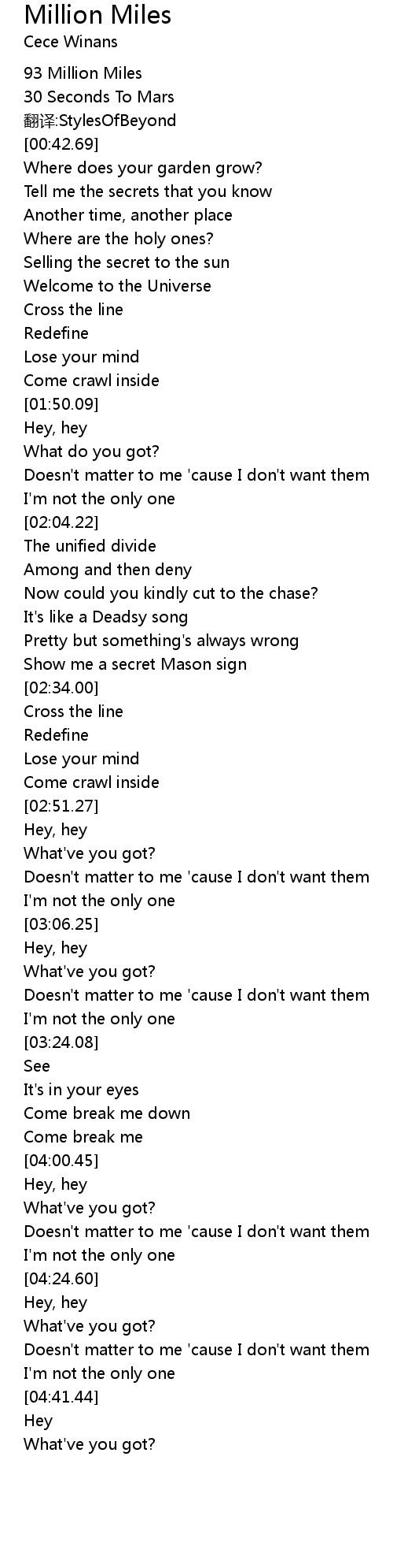 | [00:33.68] | 93 Million Miles |