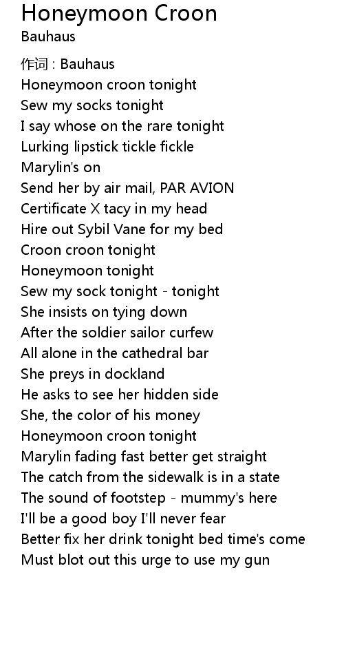 | Honeymoon croon tonight | |