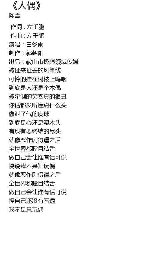 | [00:52.943] | 到底是人还是个木偶 |