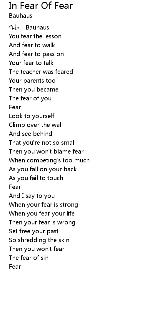 | Song | In Fear Of Fear |