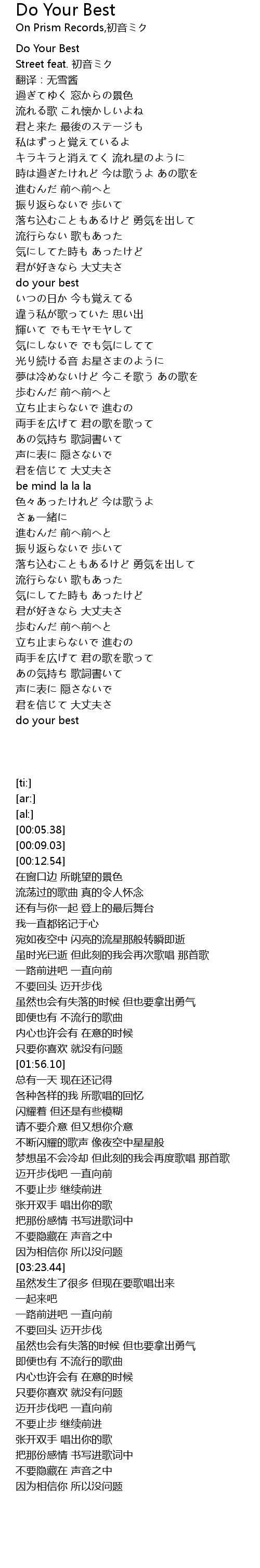 | [00:05.38] | Do Your Best |