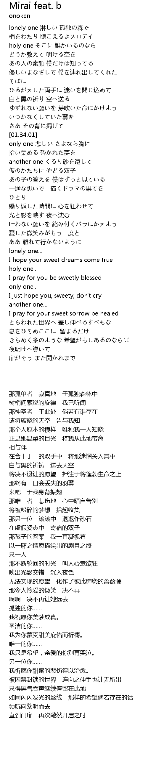 | [00:36.46] | holy one そこに 誰かいるのなら |