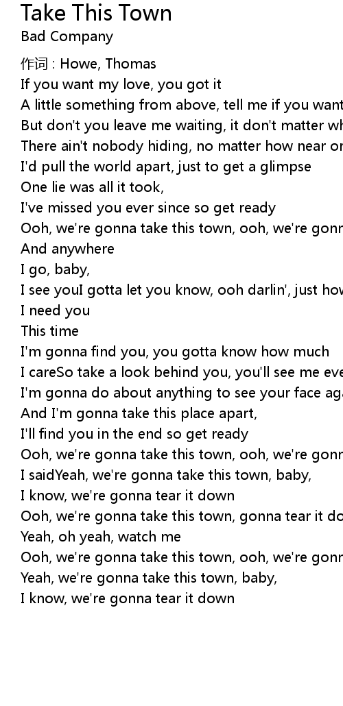| Ooh, we' re gonna take this town, ooh, we' re gonna tear it down, | |