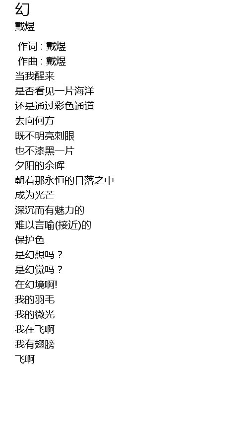 | [00:00.000] | 作词 : 戴煜 |