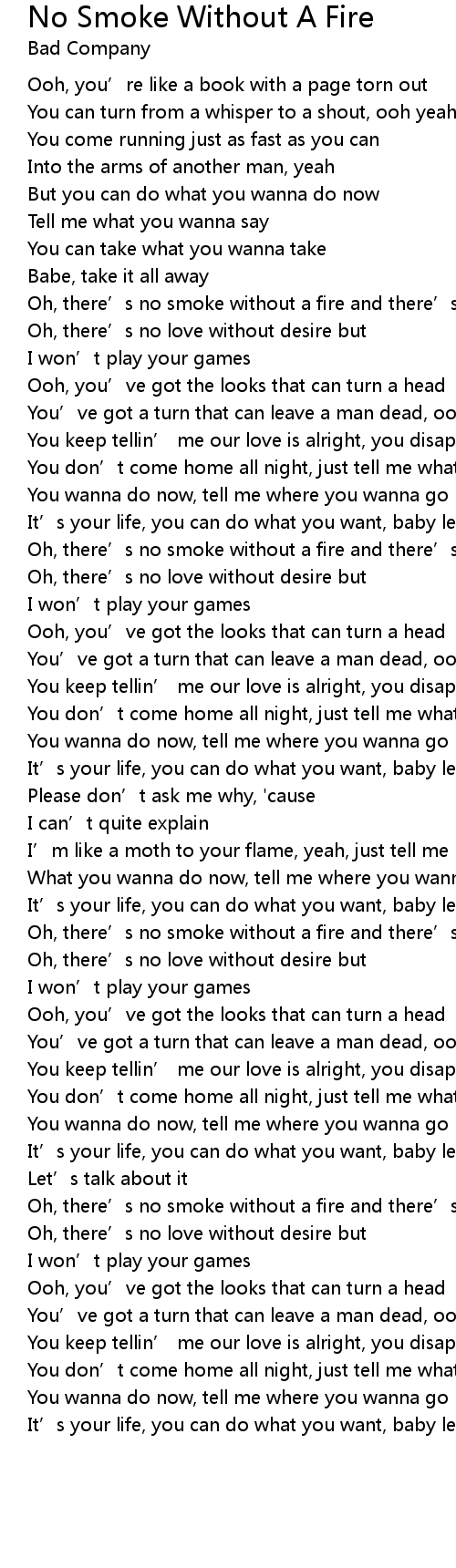 | Oh, there’s no smoke without a fire and there’s no heat without a flame | |