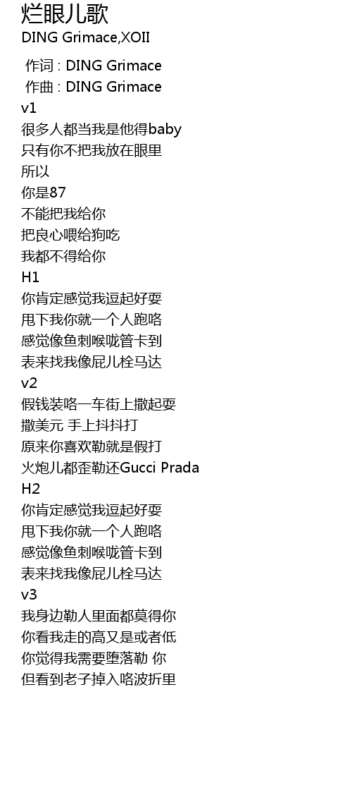 | [00:01.000] | zuò qǔ : DING Grimace |