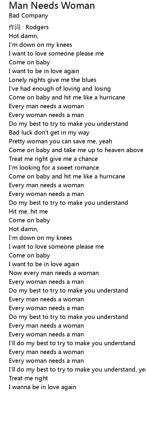 | Every woman needs a man | |