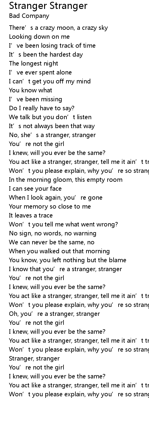 | Oh, you’re a stranger, stranger | |