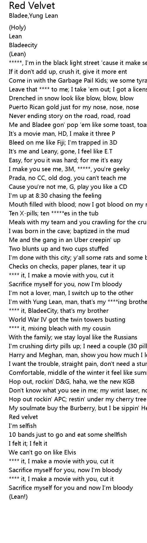 | [00:33.81] | Me and Bladee gon' pop 'em like some toast, toast, toast (Lean!) |