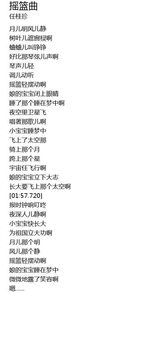 | [00:56.880] | 娘的宝宝闭上眼睛 |