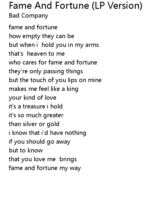 who cares for fame and fortune |