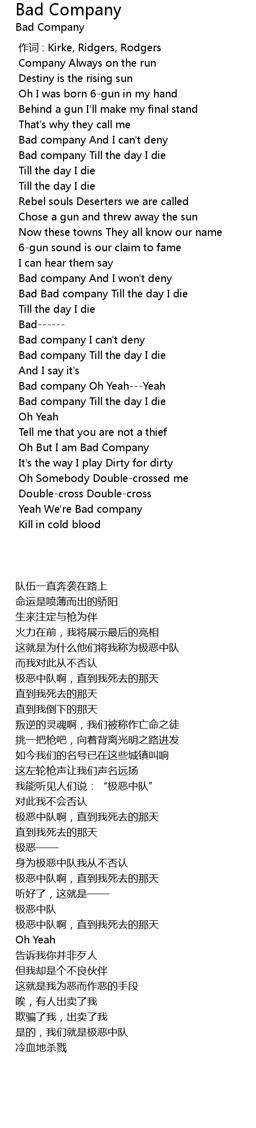 | [03:29.710] | Bad company Oh Yeah---Yeah |