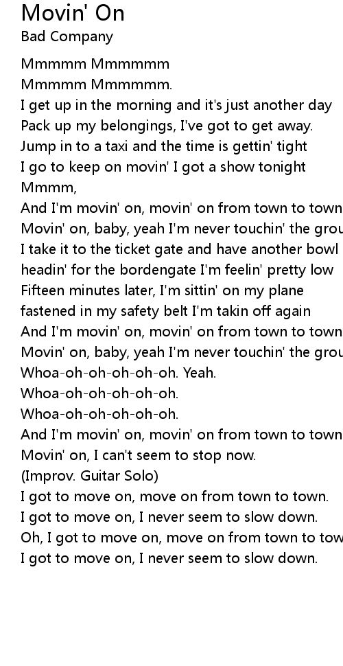 And I'm movin' on, movin' on from town to town |