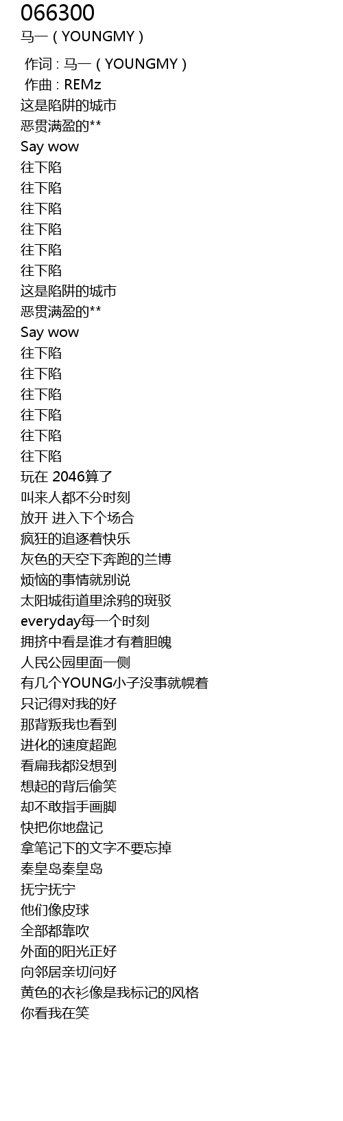 | [00:00.000] | 作词 : 马一(YOUNGMY) |