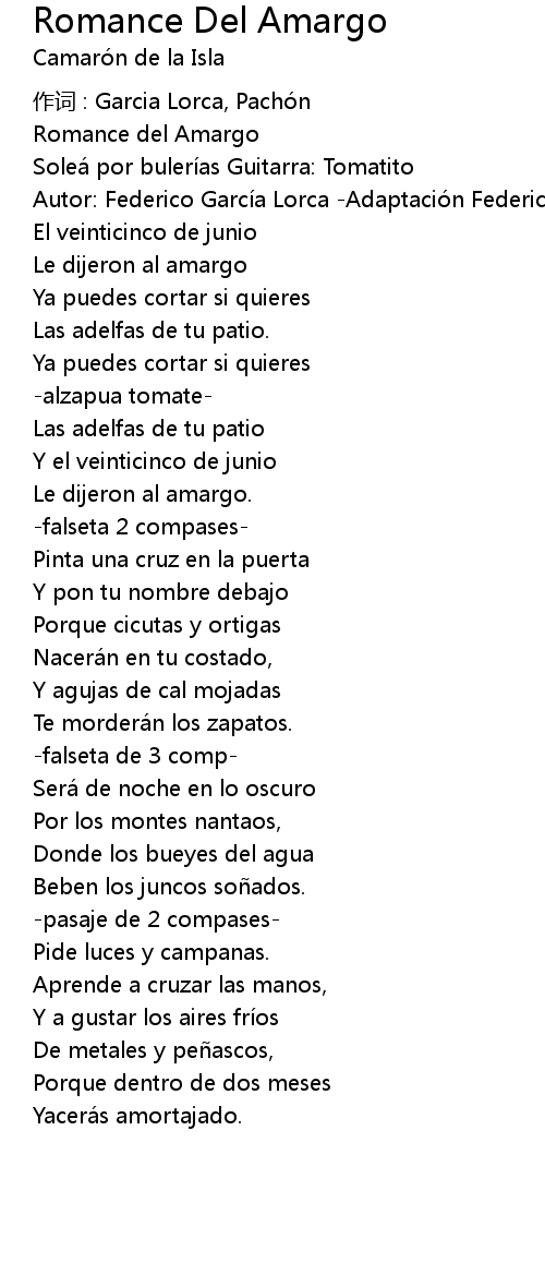 | 作词 : Garcia Lorca, Pachón | |