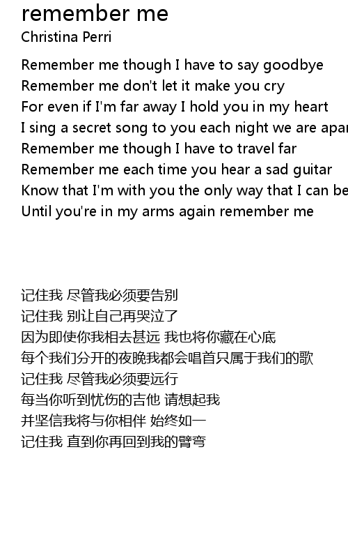 | [00:43.36] | Until you're in my arms again remember me |