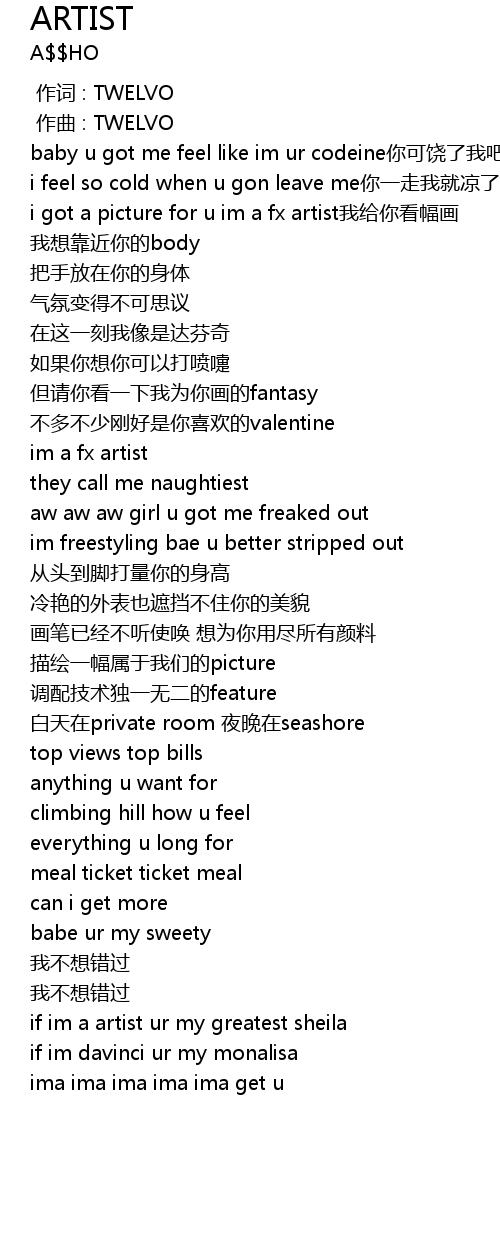 [00:21.453] baby u got me feel like im ur codeine你可饶了我吧