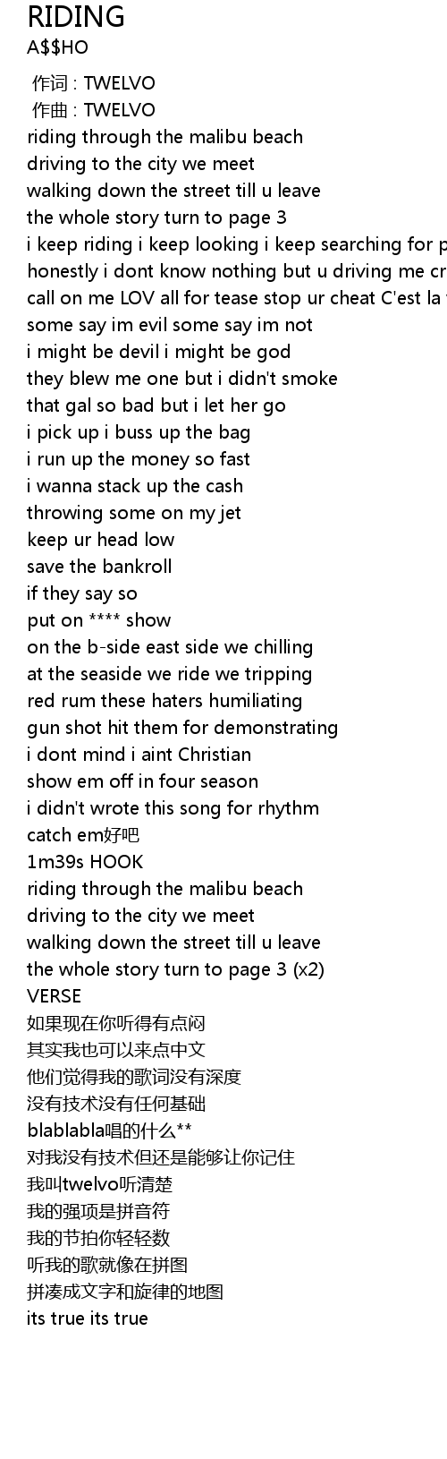| [01:23.682] | at the seaside we ride we tripping |
