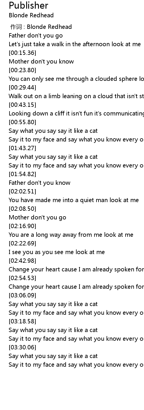 | [00:00.00] | zuò cí : Blonde Redhead |