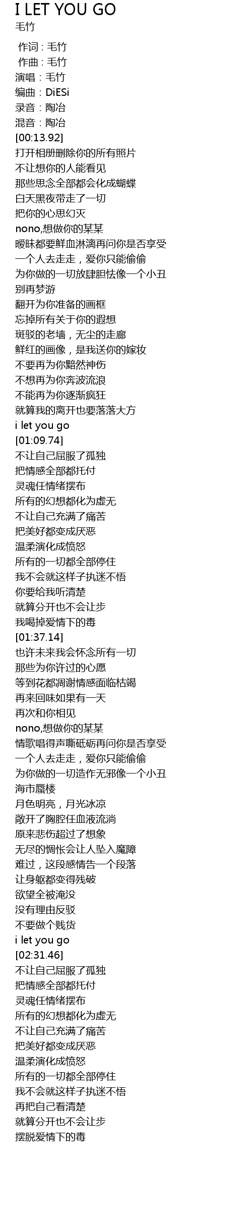 | [00:00.00] | 演唱:毛竹 |