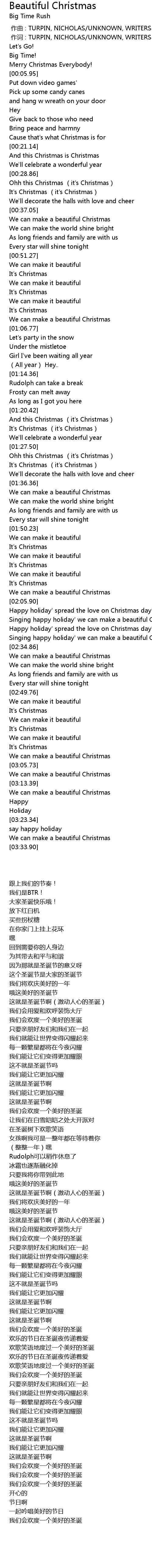 | [02:27.39] | Singing happy holiday' we can make a beautiful Christmas |