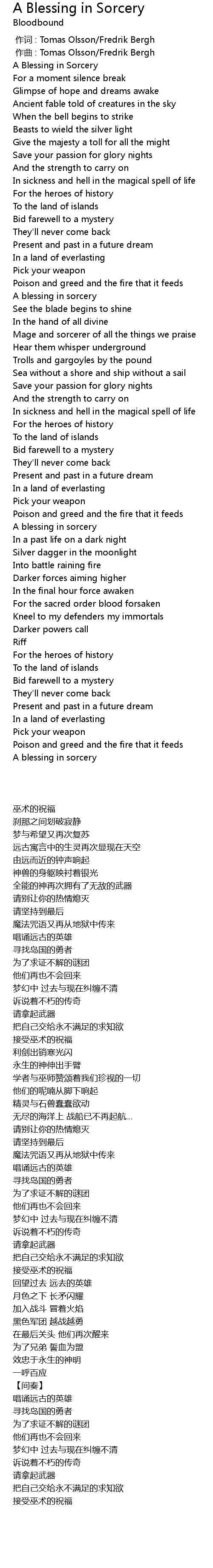 | Song | A Blessing in Sorcery |