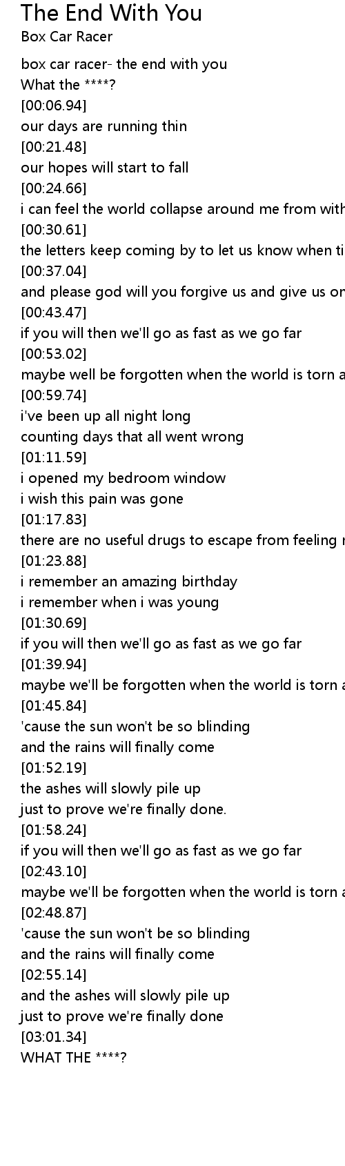 box car racer- the end with you |