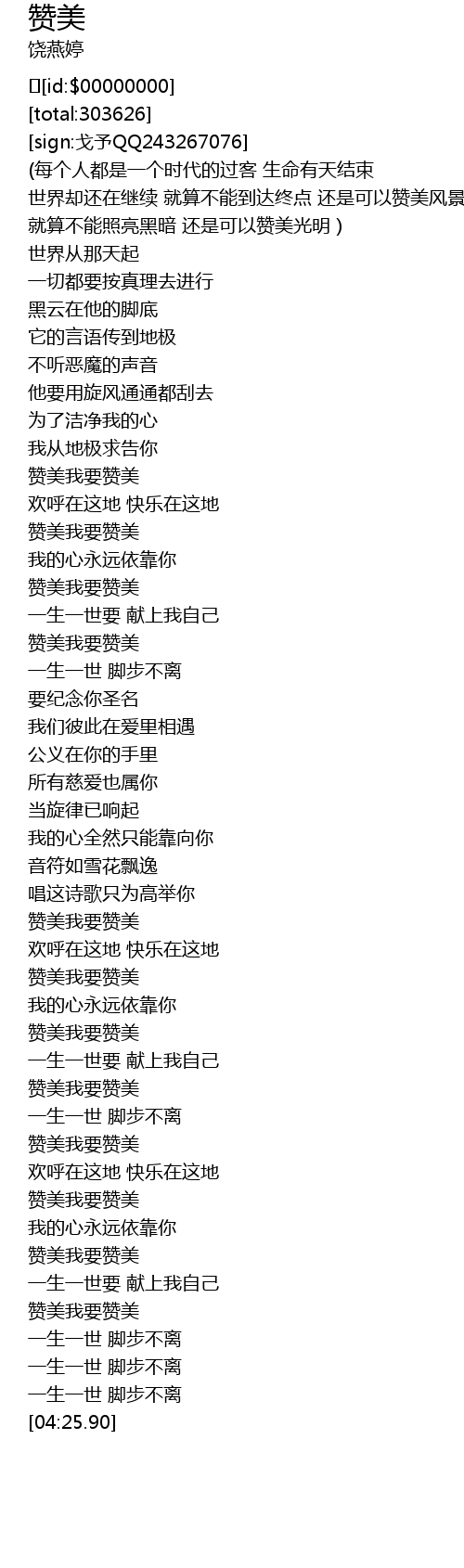 | [04:06.119] | 赞美我要赞美 |