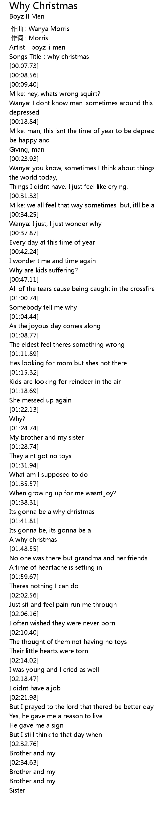 | [00:15.64] | Wanya: I dont know man. sometimes around this time of just year get I depressed. |