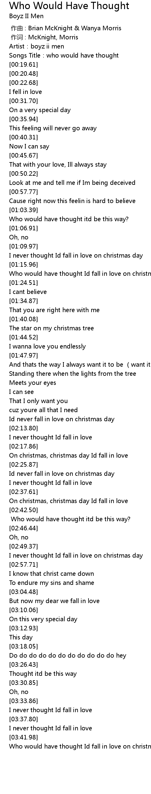 | [03:43.36] | Who would have thought Id fall in love on christmas day? |