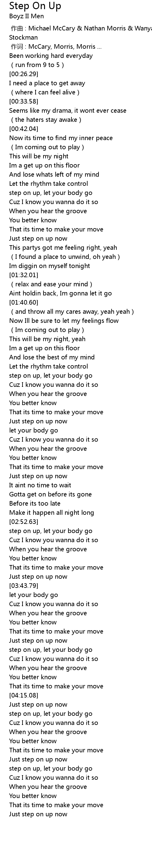| [04:17.37] | step on up, let your body go |