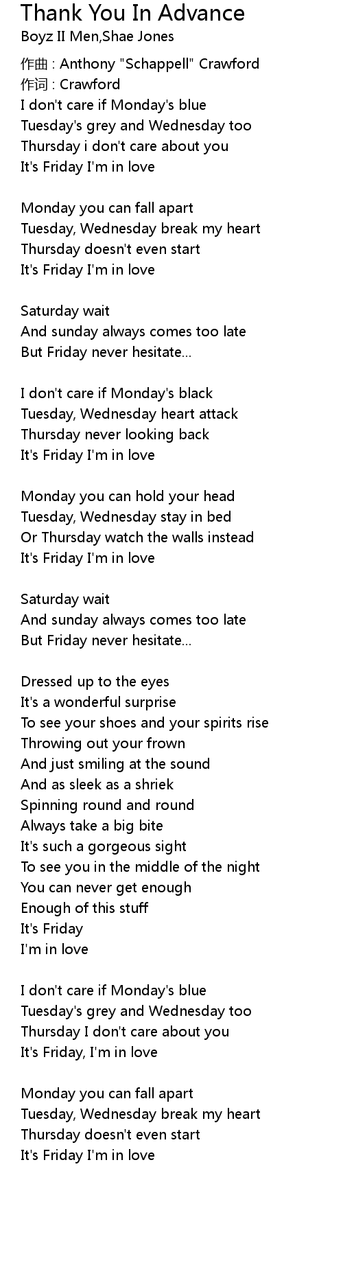 | It' s Friday I' m in love | |