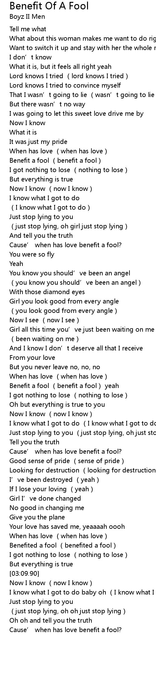 | [02:58.73] | Benefited a fool (benefited a fool) |