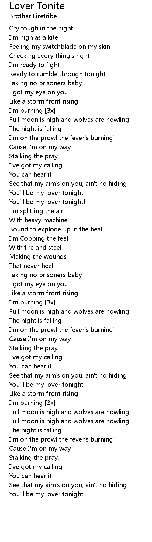 I'm on the prowl the fever's burning' |
