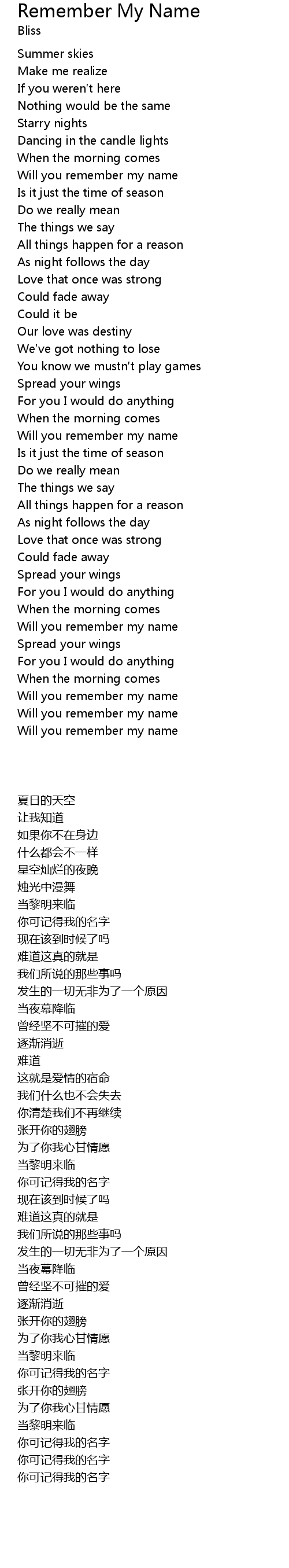 | [04:46.70] | Will you remember my name |