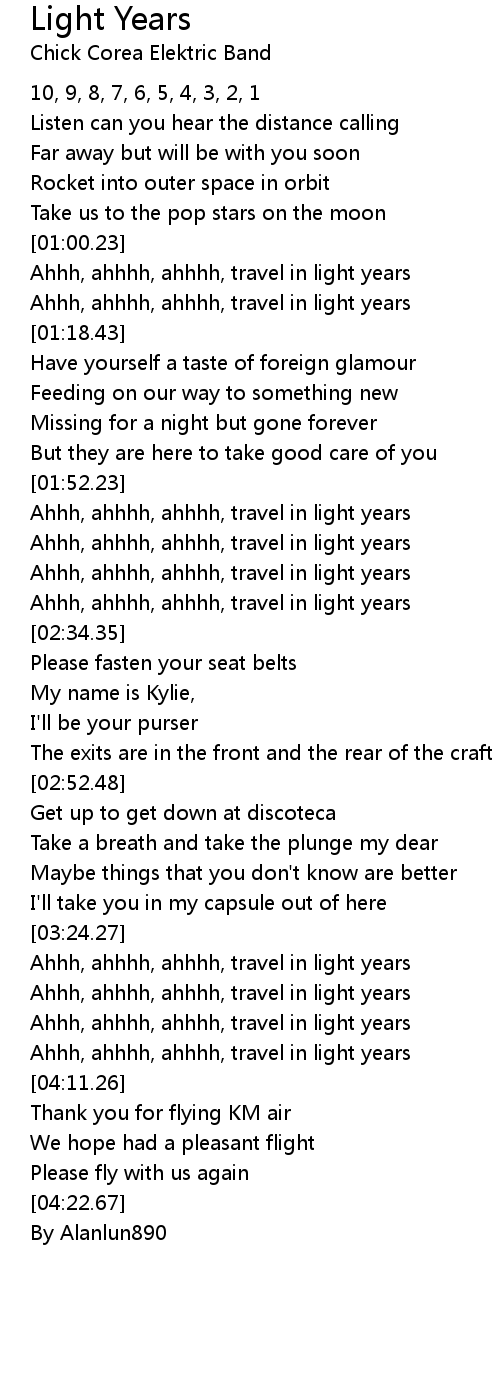Ahhh, ahhhh, ahhhh, travel in light years |