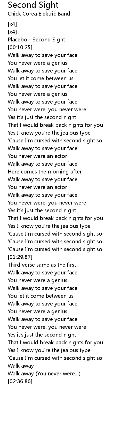 'Cause I'm cursed with second sight so |