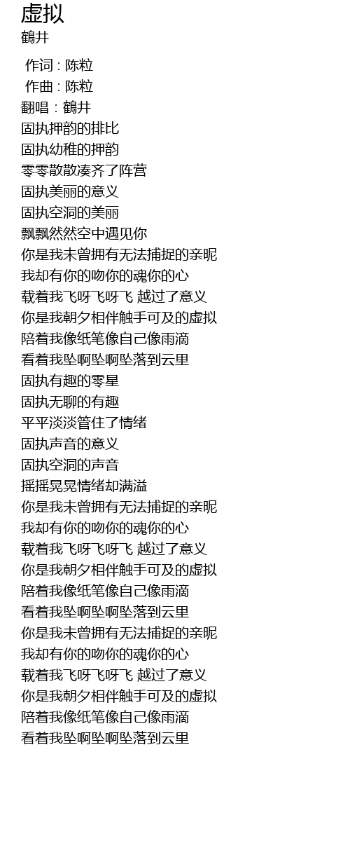 | [00:00.000] | 作词 : 陈粒 |