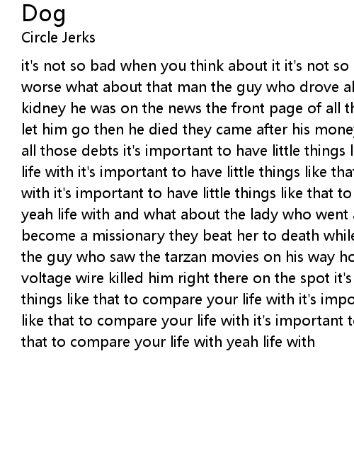 it's not so bad when you think about it it's not so bad things could be much worse what about that man the guy who drove all the way to boston he needed a kidney he was on the news the front page of all the papers he was so famous they let him go then he died they came after his money his wife and kids all his pets all those debts it's important to have little things like that to compare your life with it's important to have little things like that to compare your life with it's important to have little things like that to compare your life with yeah life with and what about the lady who went all that way to ethiopia to become a missionary they beat her to death while she was preaching what about the guy who saw the tarzan movies on his way home he tried to swing on a high voltage wire killed him right there on the spot it's important to have little things like that to compare your life with it's important to have little things like that to compare your life with it's important to have little things like that to compare your life with yeah life with |