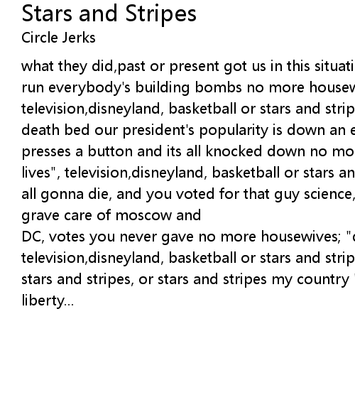 DC, votes you never gave no more housewives; "days of our lives", television,disneyland, basketball or stars and stripes or stars and stripes, or stars and stripes, or stars and stripes my country 'tis of thee sweet land of liberty... |