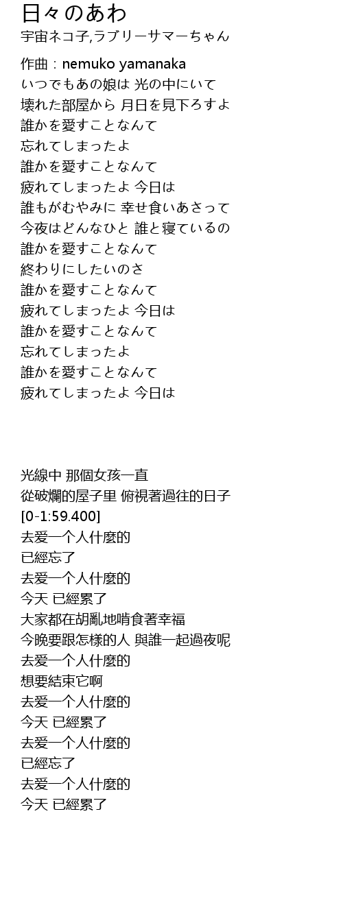| [00:03.800] | 作曲:nemuko yamanaka |