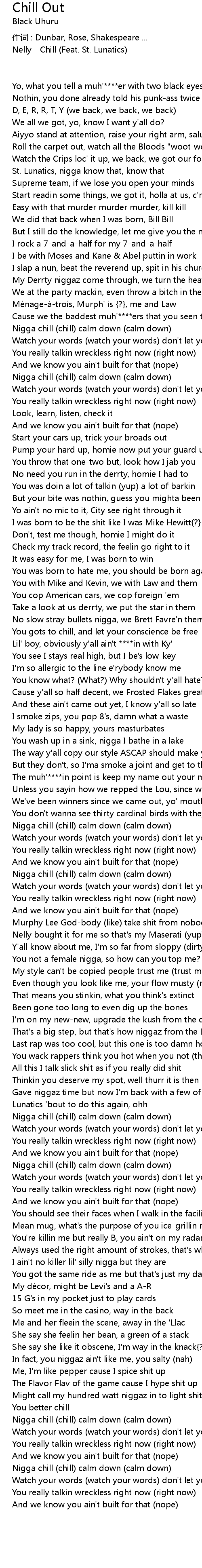 | Nigga chill (chill) calm down (calm down) | |