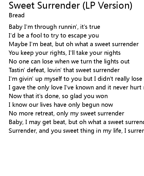 Maybe I'm beat, but oh what a sweet surrender |