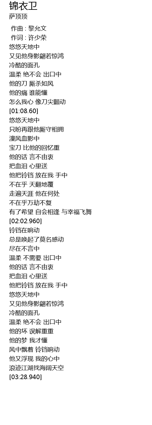 | [00:00.00] | 作曲 : 黎允文 |