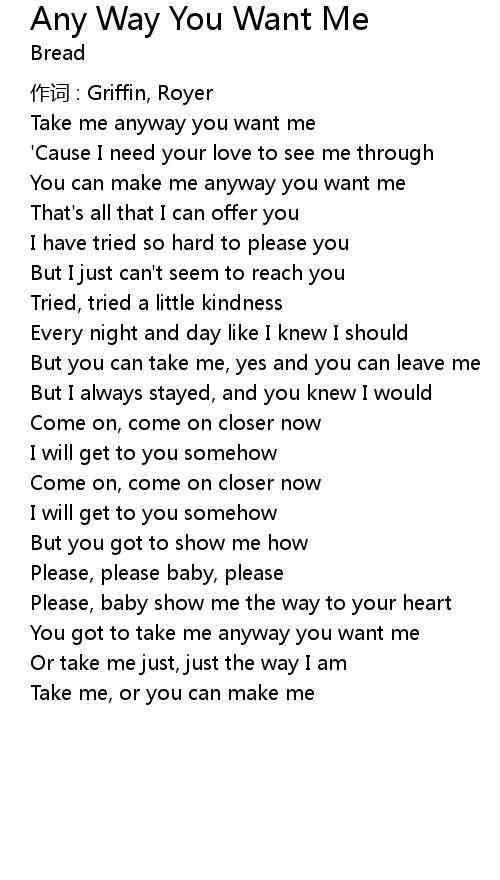 | Take me anyway you want me | |