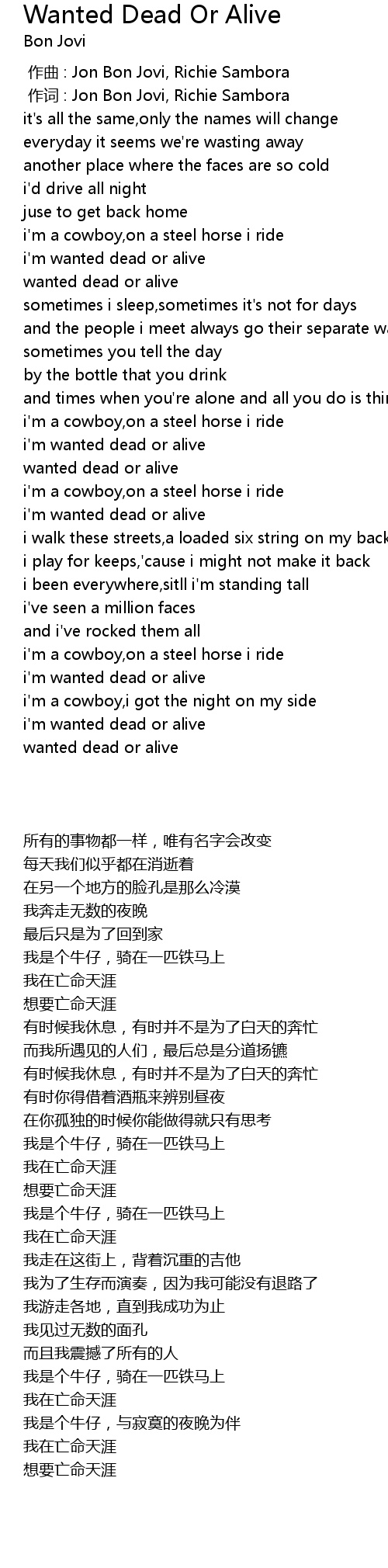 | [00:01.00] | 作词 : Jon Bon Jovi, Richie Sambora |