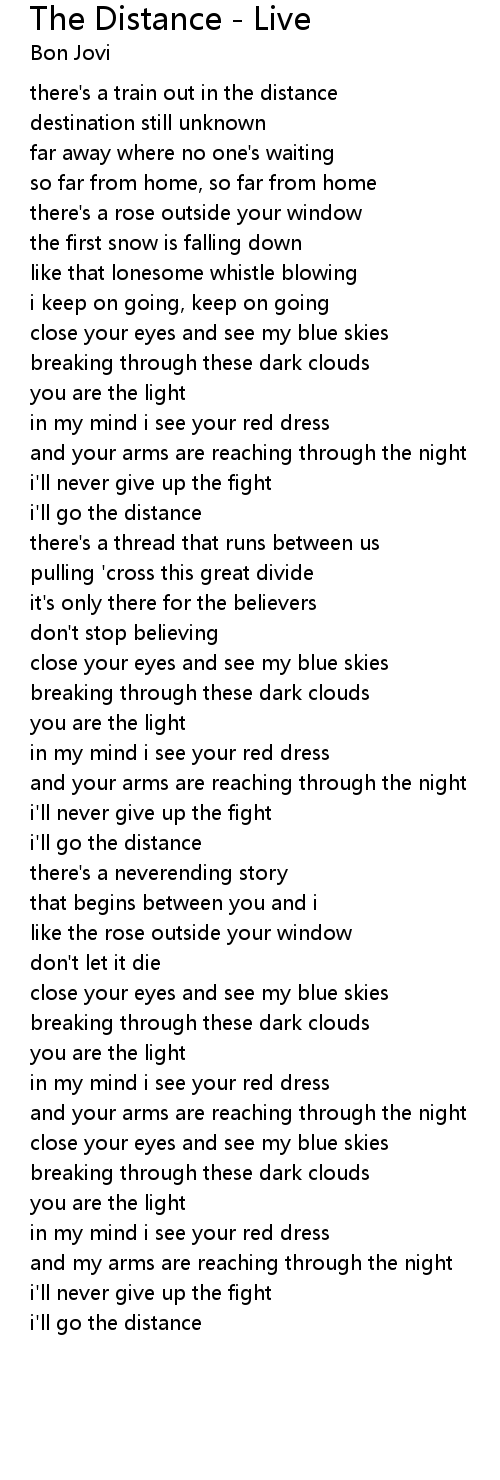 The Distance - Live Lyrics