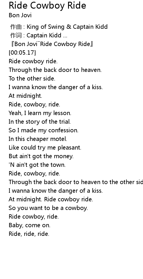 | [00:00.00] | Bon Jovi Ride Cowboy Ride |